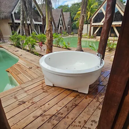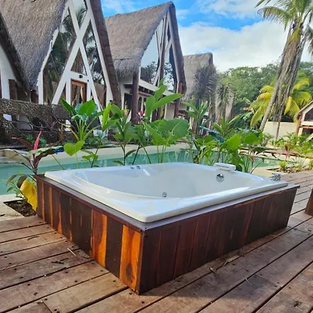 Kaaj Ndomi别墅位于巴卡拉尔,离Balneario Municipal de Bacalar2公里,设有配游泳池 和休息区的露台。